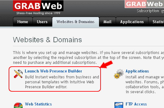 3) Click on "Launch Web Presence Builder"