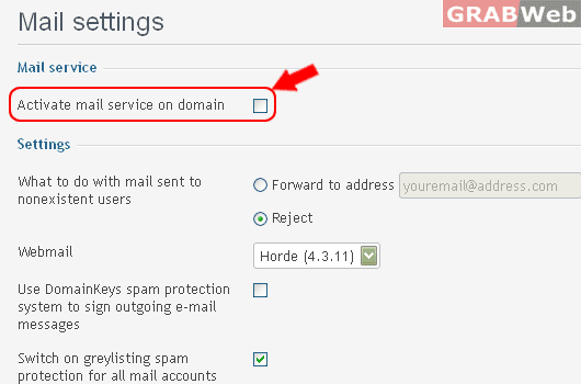 4) Click check box "Active mail service on domain"