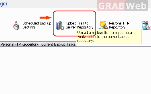 To upload a backup file to the Plesk control panel's backup repository please follow the following:-