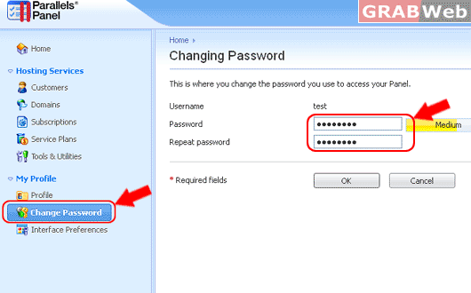 To change the password of your Plesk contol panel account, Please follow the following steps :-