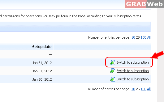 3) Click on "Switch to subscriptions" in the front of Domain to Manage, Emails, FTP and etc.