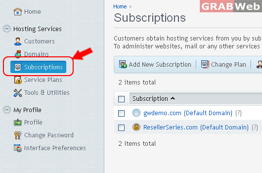 2) Click on "Subscription".