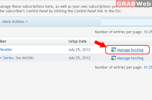 3) Click on "Manage Hosting" in front of the domain whom you want to enable admin access.