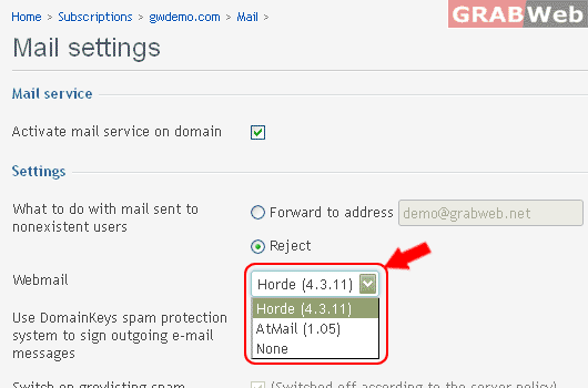 6) Click on Drop down menu to change Interface with Horde to Atmail & Mail Enable.