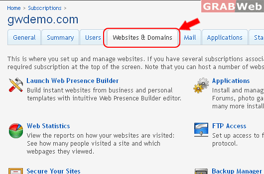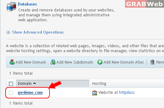 5) Click on the "Domain Name" under whom you want to enable PHP support.