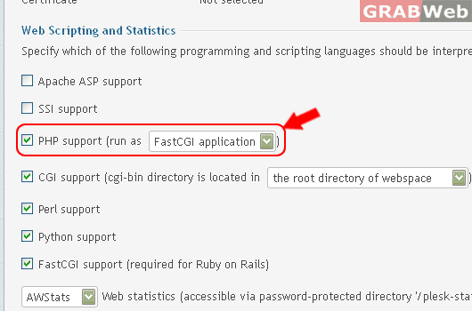 6) Click on Check box in front of "Disable / Enable PHP Scripting ( PHP / CGI / APACHE )