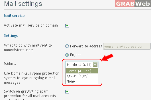 4) Click on Drop down menu to change Interface with Horde to Atmail & Mail Enable.