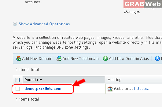 3) Click on the "Domain Name" under whom you want to enable ASP.NET support.