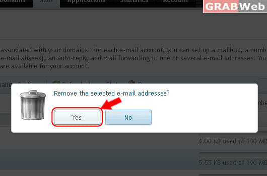 5) You will get POP menu for Yes and No, to Delete Mail box.