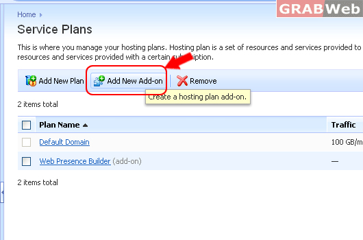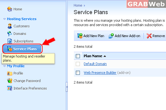Service PlansThis is where you manage your hosting plans. Hosting plan is a set of resources and services provided to your hosting service customers when they subscribe to it. There are also add-on plans that extend the amount of resources and services provided with a certain subscription.