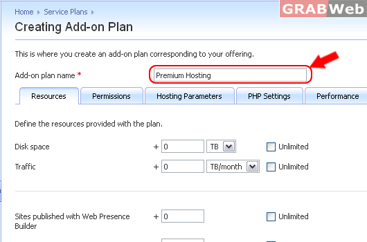 Setting up a new add-on is similar to creating a new plan. This plan sign means that anything typed these boxes will be added to whatever resources the user already has.