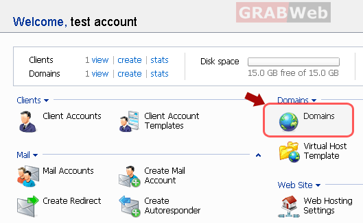 2) Click the "Domains" shortcut in the navigation panel.