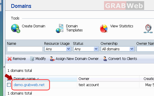 3) Click the required domain name in the list.