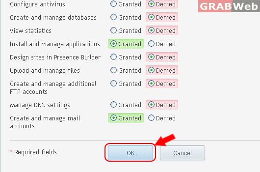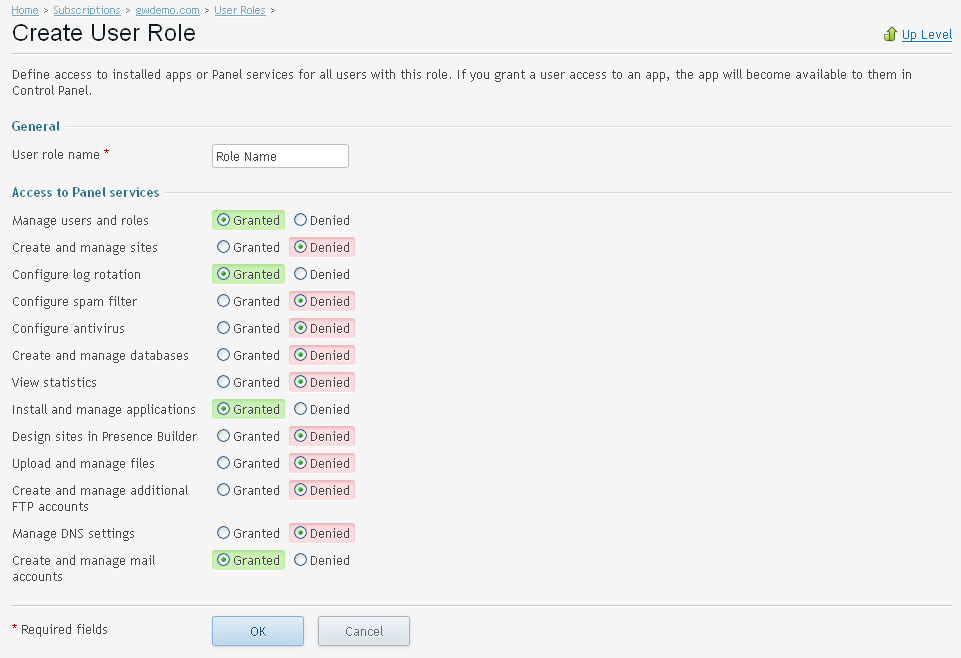 Define access to installed apps or Panel services for all users with this role. If you grant a user access to an app, the app will become available to them in Control Panel.